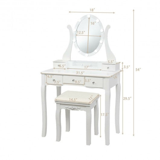 10 Dimmable Lights Vanity Table Set with Lighted Mirror and Cushioned Stool-White
