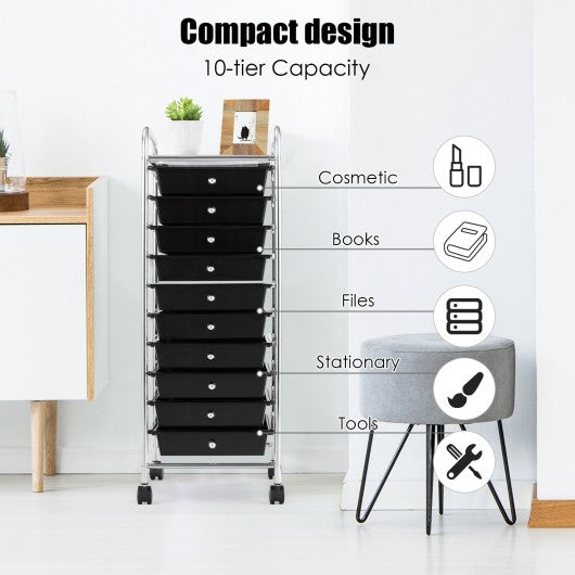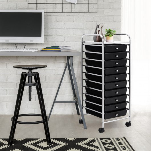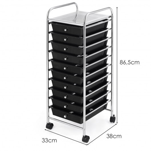 10 Drawer Rolling Storage Cart Organizer-Black