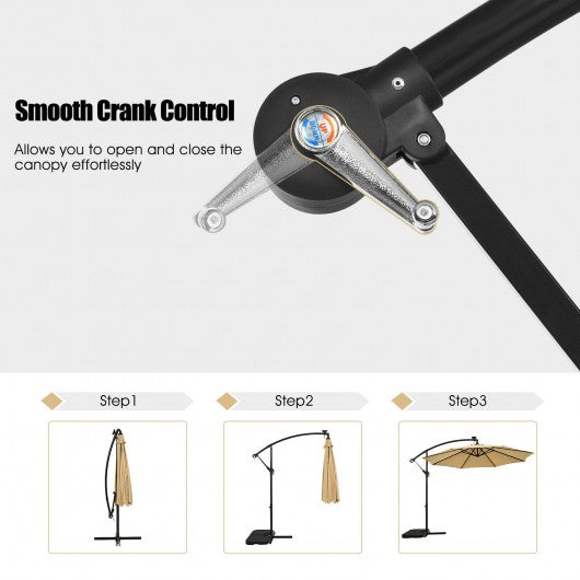 10 Ft Solar LED Offset Umbrella with 40 Lights and Cross Base for Patio-Beige