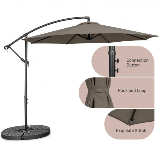 10FT Offset Umbrella with 8 Ribs Cantilever and Cross Base Tilt Adjustment-Brown