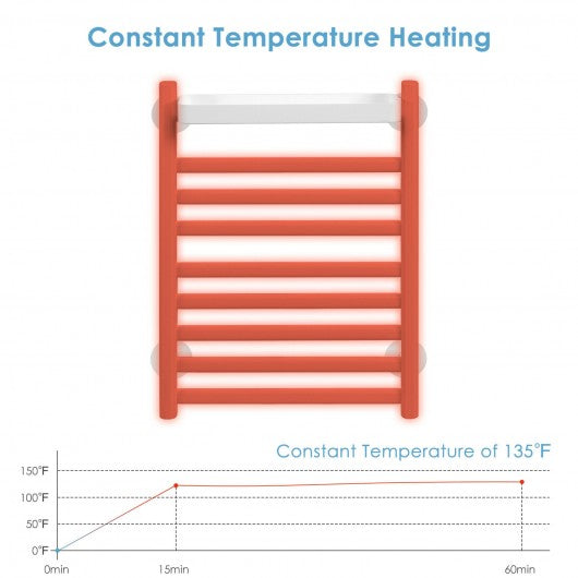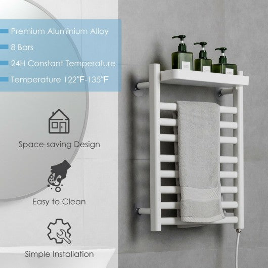 110W Electric Heated Towel Rack with Top Tray for Bathroom and Kitchen
