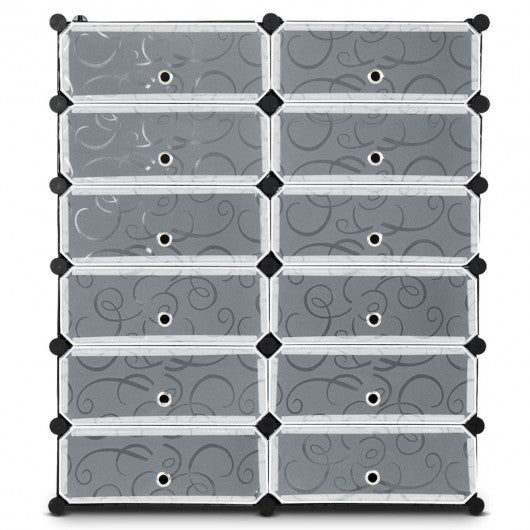 12 Cubes DIY Portable Plastic Shoe Rack with Doors