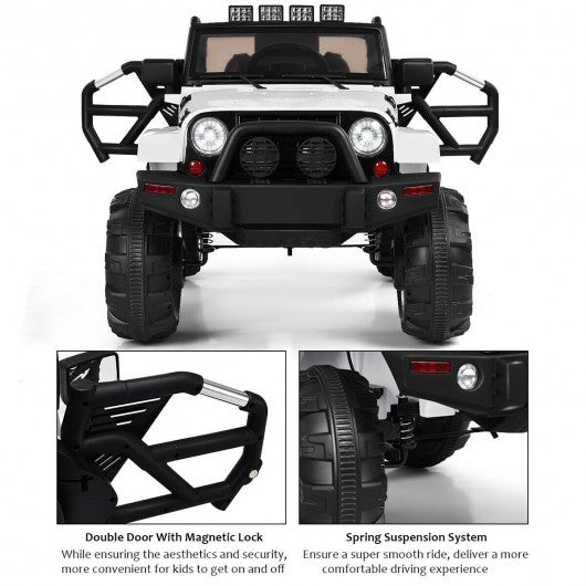12V Kids Remote Control Riding Truck Car with LED Lights-White