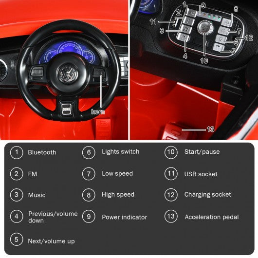 12V Licensed Volkswagen Beetle Kids Ride On Car with Remote Control-Red