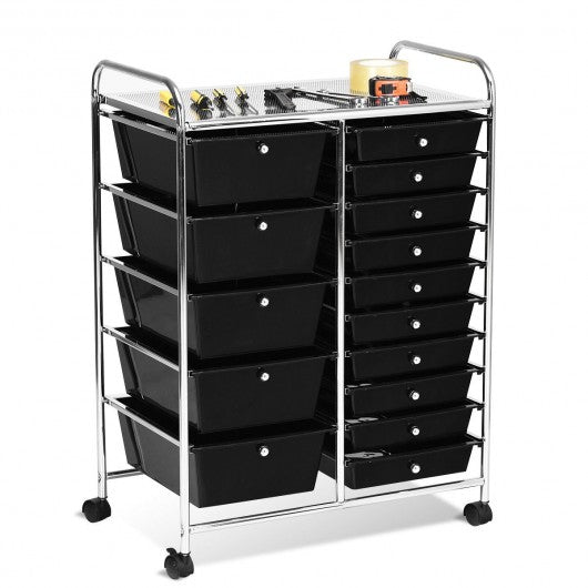 15-Drawer Utility Rolling Organizer Cart Multi-Use Storage-Black