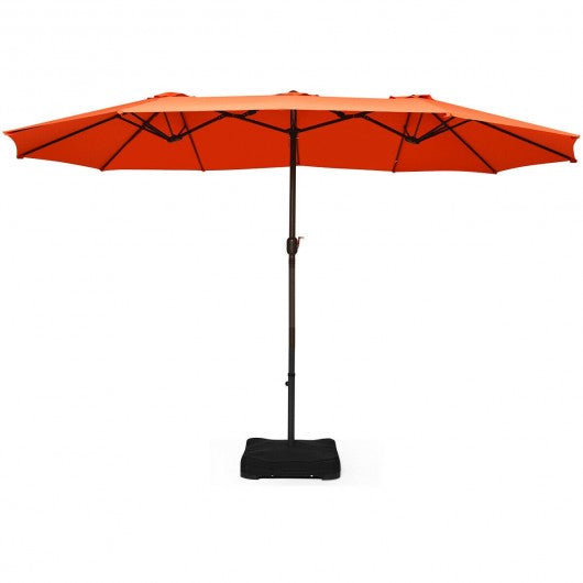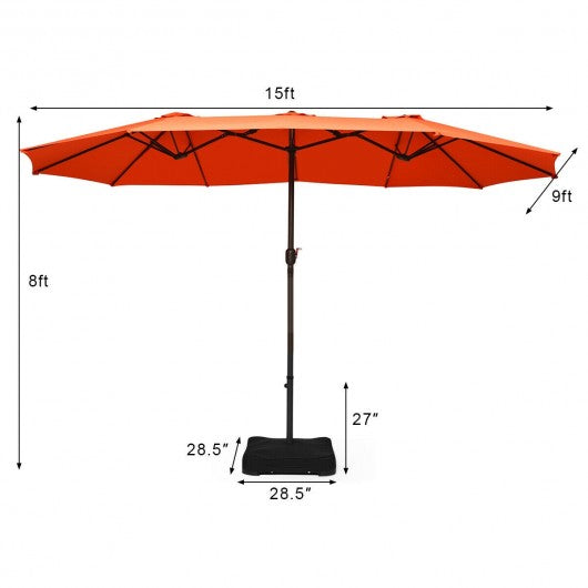 15 Foot Extra Large Patio Double Sided Umbrella with Crank and Base-Orange