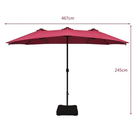 15 Ft Solar LED Patio Double-sided Umbrella Market Umbrella with Weight Base-Red