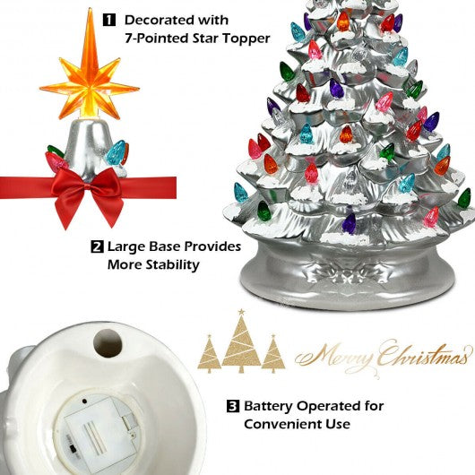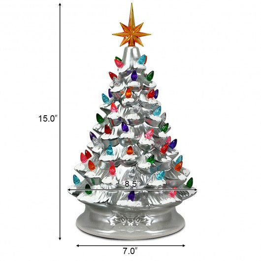 15" Pre-Lit Hand-Painted Ceramic Christmas Tree-Silver