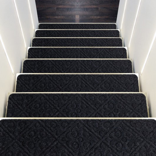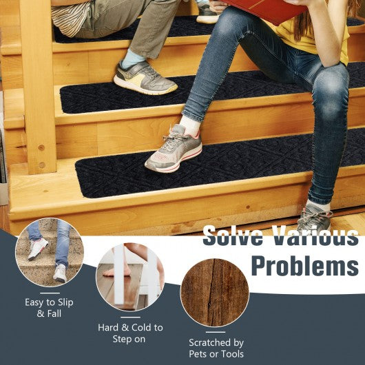 15Pcs Indoor Non-Slip Stair Carpet Mats for Wooden Steps-Gray