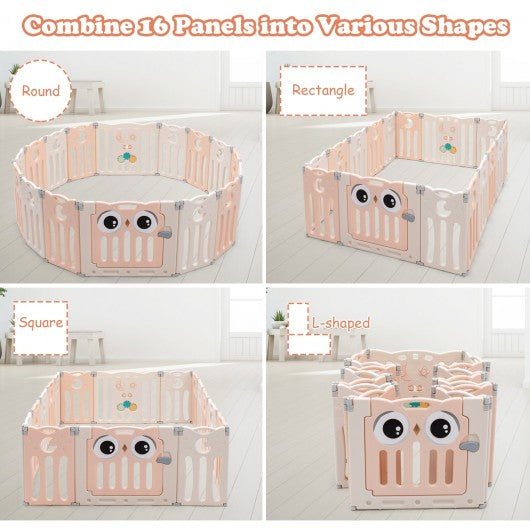 16-Panel Baby Activity Center Play Yard with Lock Door -Pink