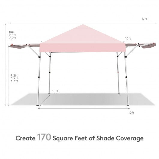 17 Feet x 10 Feet Foldable Pop Up Canopy with Adjustable Instant Sun Shelter-Pink