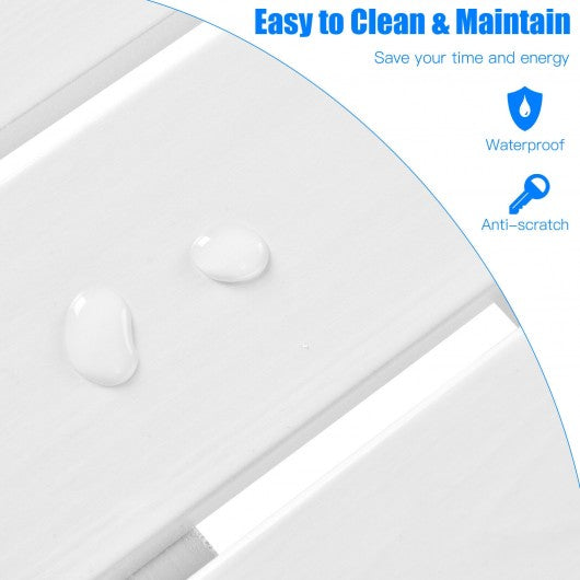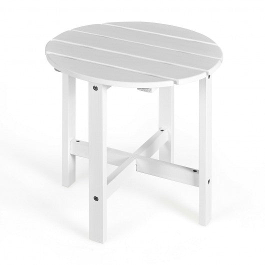 18" Patio Round Side Wooden Slat End Coffee Table for Garden-White