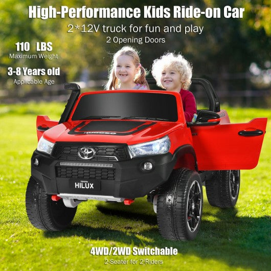2*12V Licensed Toyota Hilux Ride On Truck Car 2-Seater 4WD with Remote Painted Red