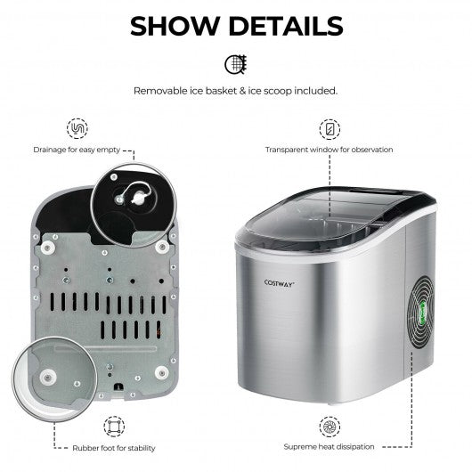 2.2 L Portable Ice Cube Maker with Bullet Shaped Ice Cube-Silver Gray