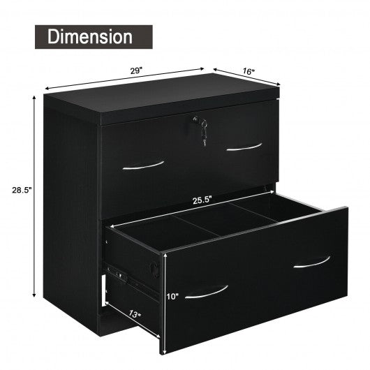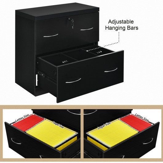 2-Drawer File Cabinet with Lock Hinging Bar Letter and Legal Size-Black