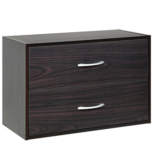 2-Drawer Stackable Horizontal Storage Cabinet Dresser Chest with Handles-Espresso