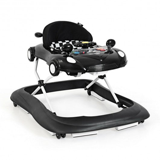 2-in-1 Foldable Baby Walker with Music Player and Lights-Black
