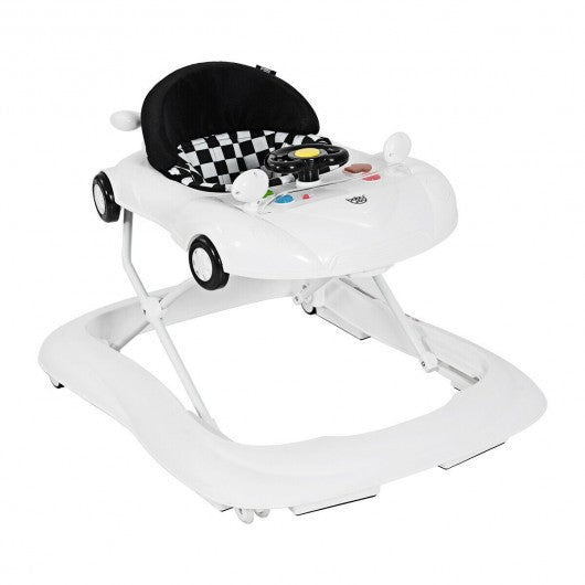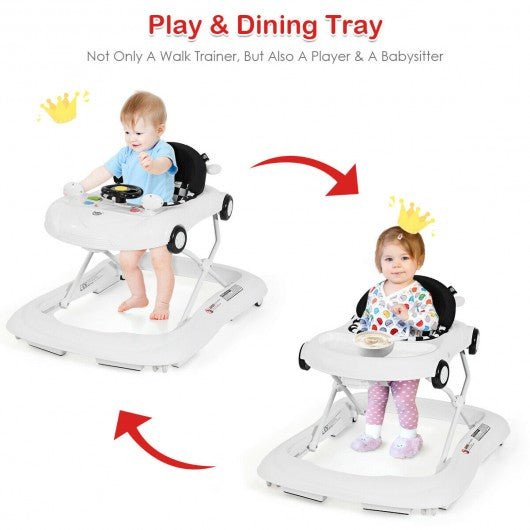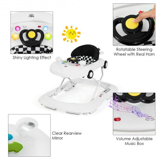 2-in-1 Foldable Baby Walker with Music Player and Lights-White