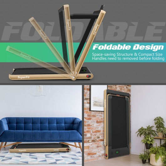 2 in 1 Folding Treadmill with Bluetooth Speaker Remote Control-Yellow