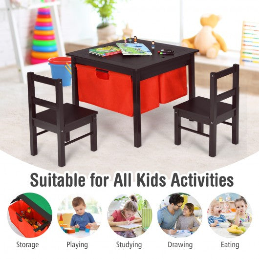 2-in-1 Kids Activity Table and 2 Chairs Set with Storage Building Block Table-Espresso