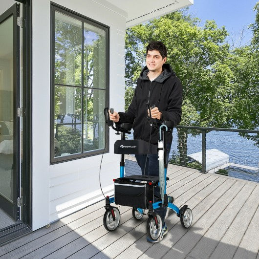 2-in-1 Multipurpose Rollator Walker with Large Seat-Blue