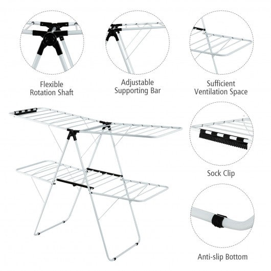 2-Level Foldable Clothes Drying with Height-Adjustable Gullwing