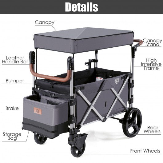 2 Passenger Push Pull Stroller with Adjustable Handle Bar