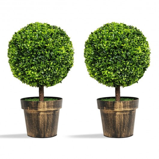 2 Pcs 24" Artificial Boxwood Topiary Ball Tree for House and Office