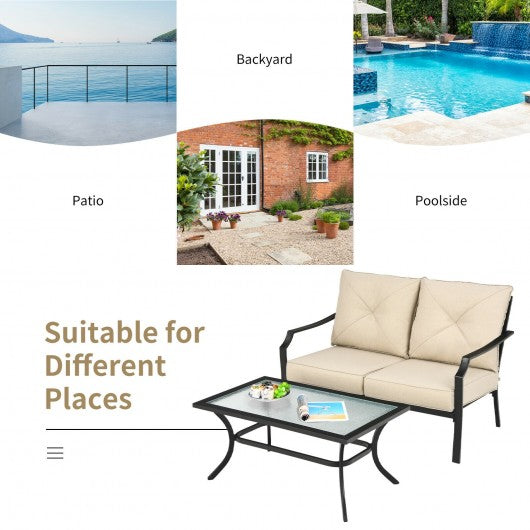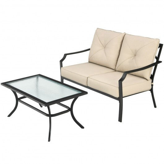 2 PCS Patio Outdoor Cushioned Sofa Bench with Coffee Table-Beige