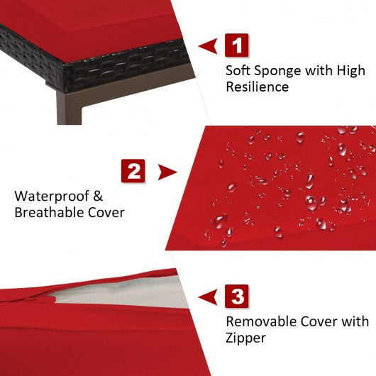 2 Pcs Patio Rattan Adjustable Back Lounge Chair-Red