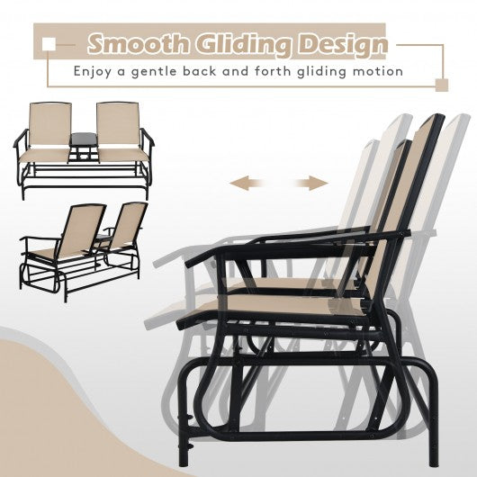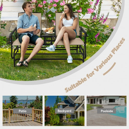 2-Person Double Rocking Loveseat with Mesh Fabric and Center Tempered Glass Table