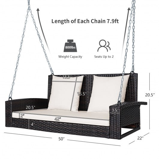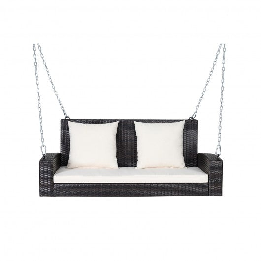 2-Person Patio Rattan Porch Swing with Cushions-White