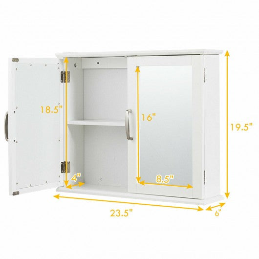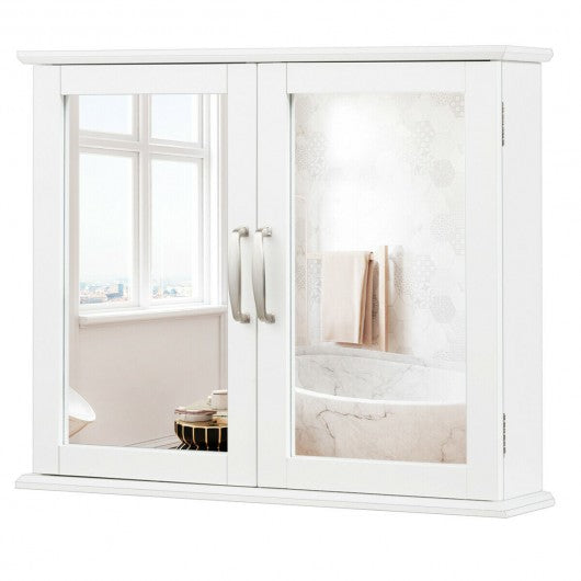 2-Tier Bathroom Wall-Mounted Mirror Storage Cabinet with Handles