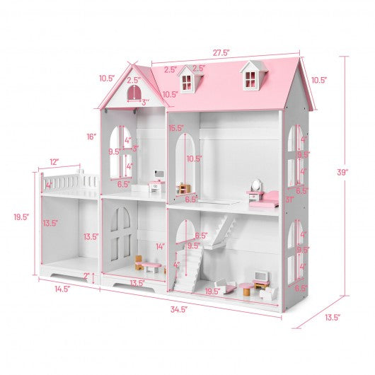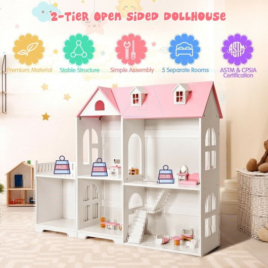 2-Tier Dollhouse Bookcase with Sufficient Storage Space-Pink