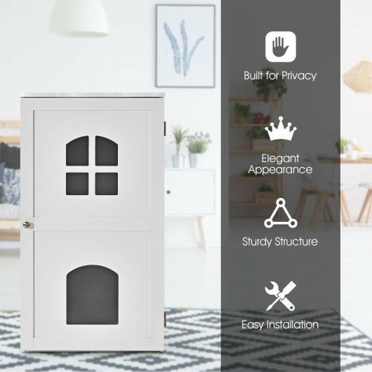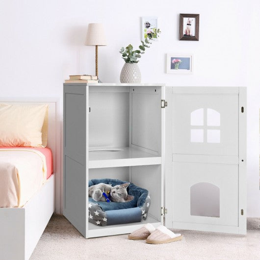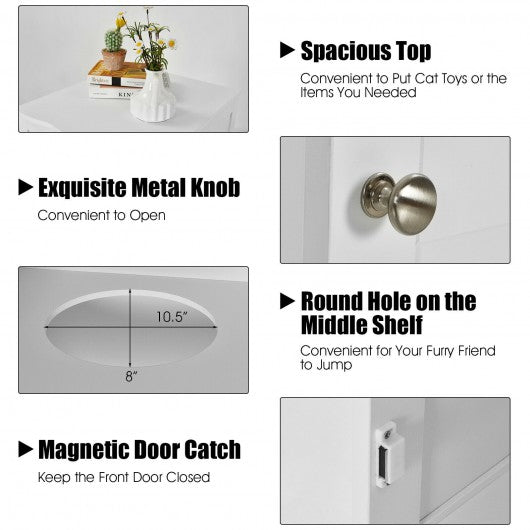 2-Tier Hidden Cat House Enclosure Nightstand-White