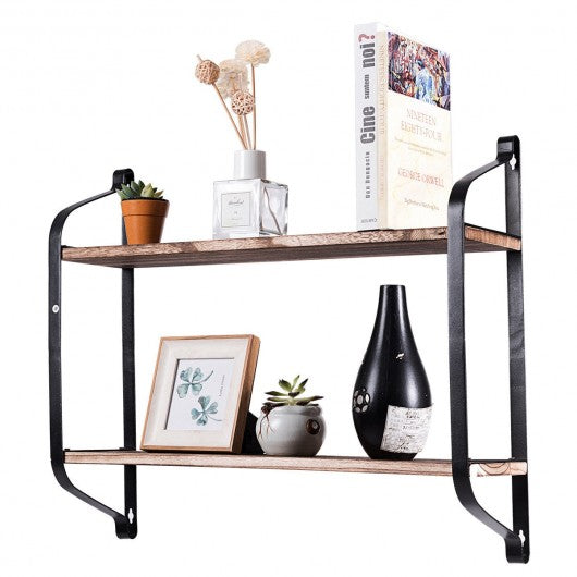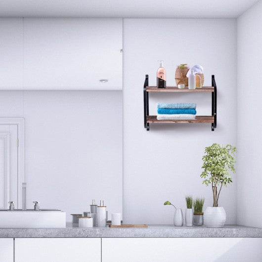 2-Tier Rustic Wall Mounted Floating Shelf Multi-purpose Storage