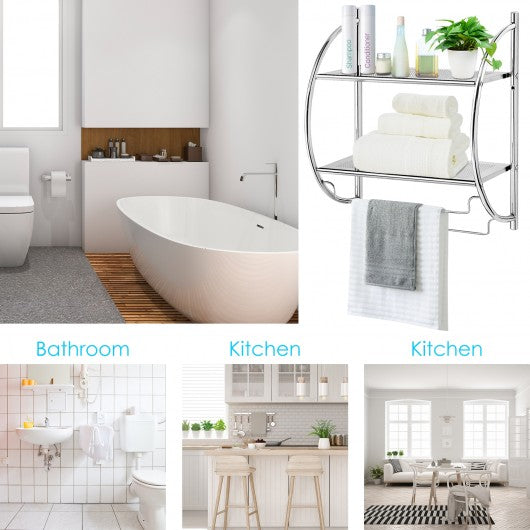 2-Tier Wall Mount Shower Organizer Towel Storage Rack