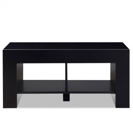 2-tier Wood Coffee Table Sofa Side Table with Storage Shelf-Black