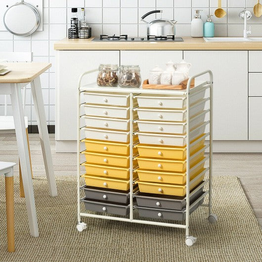 20 Drawers Storage Rolling Cart Studio Organizer-Yellow