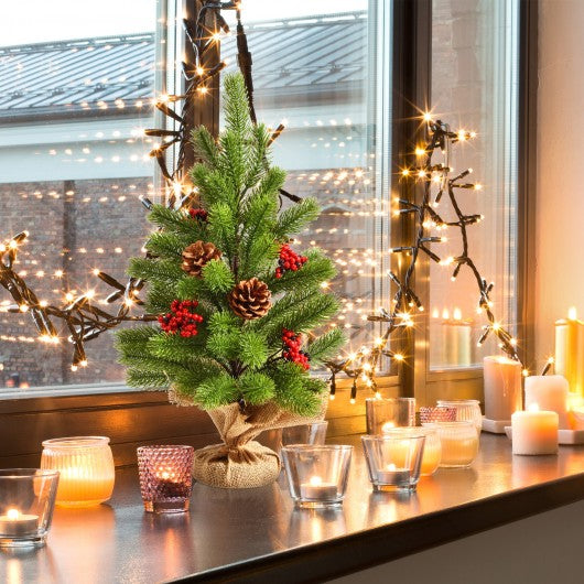 20 Inch Tabletop PE Christmas Tree Holiday Decor with Pine Cones and Red Berries
