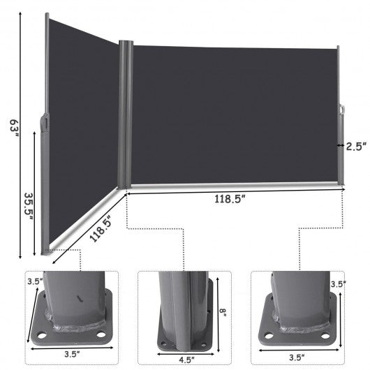 237" x 63" Patio Retractable Double Folding Side Awning Screen Divider