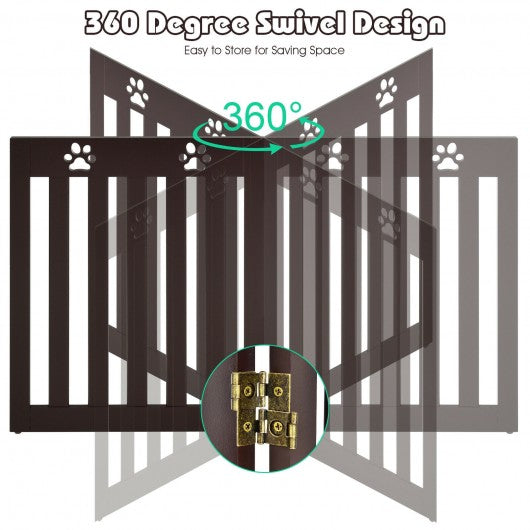 24" Folding Wooden Freestanding Pet Gate Dog Gate with 360° Hinge -Espresso