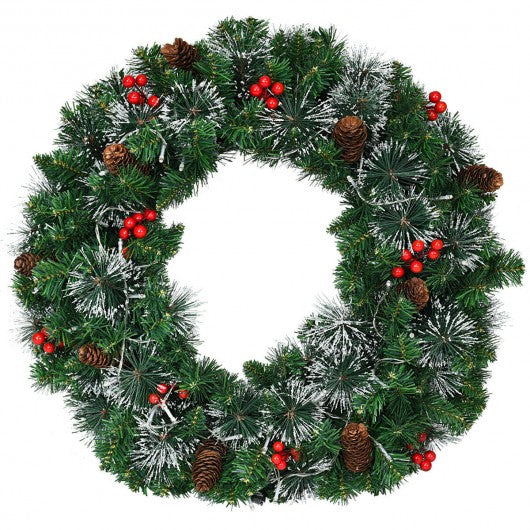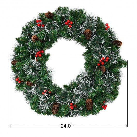 24 Inch Pre-lit Christmas Spruce Wreath with 8 Flash Modes