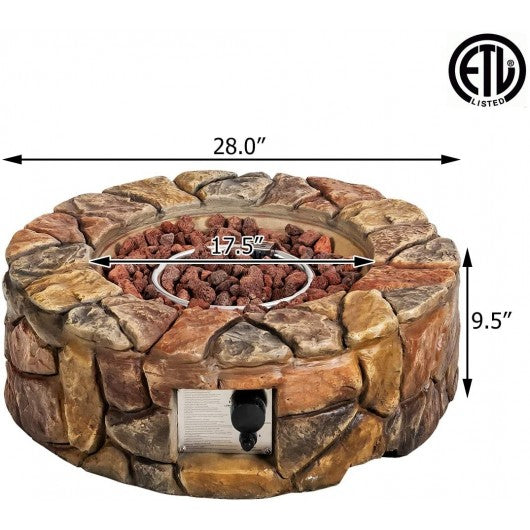 28 Inch Propane Gas Fire Pit Outdoor 40 000 BTU Stone-Brown