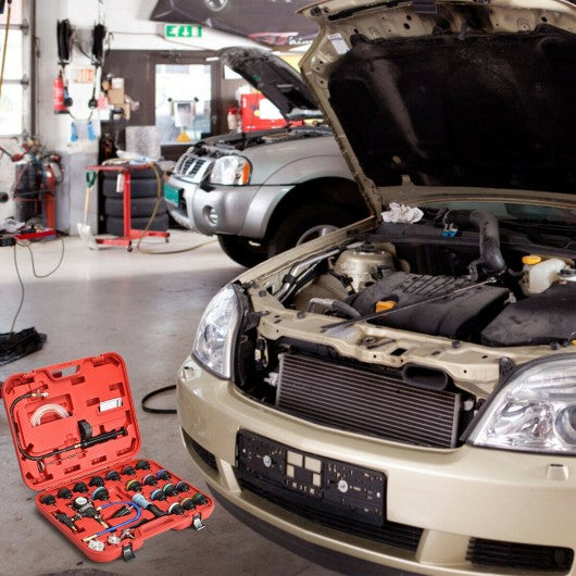 28 pcs Pressure Tester Vacuum-Type Cooling System Refill Kit-Red