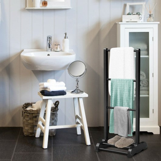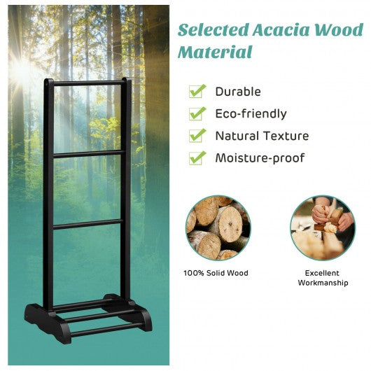 3-Bar Acacia Wood Freestanding Bathroom Towel Rack with Bottom Storage Shelf-Black