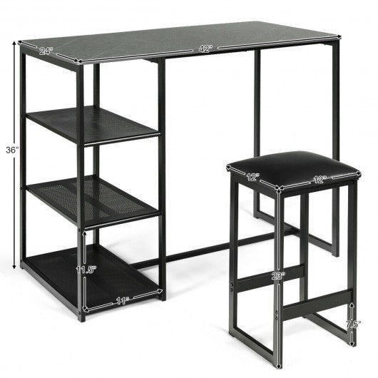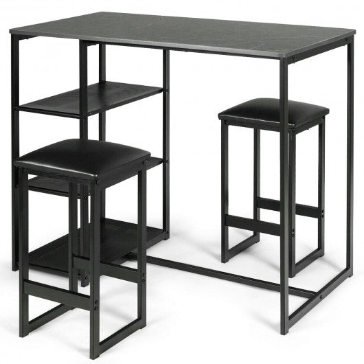 3 pcs Dining Set with Faux Marble Top Table and 2 Stools-Black