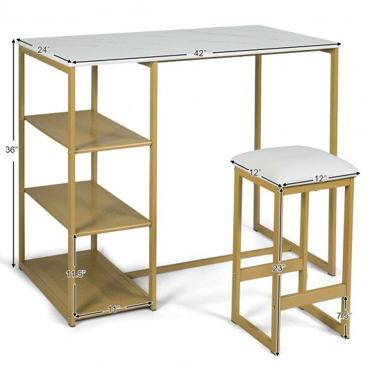 3 pcs Dining Set with Faux Marble Top Table and 2 Stools-Golden