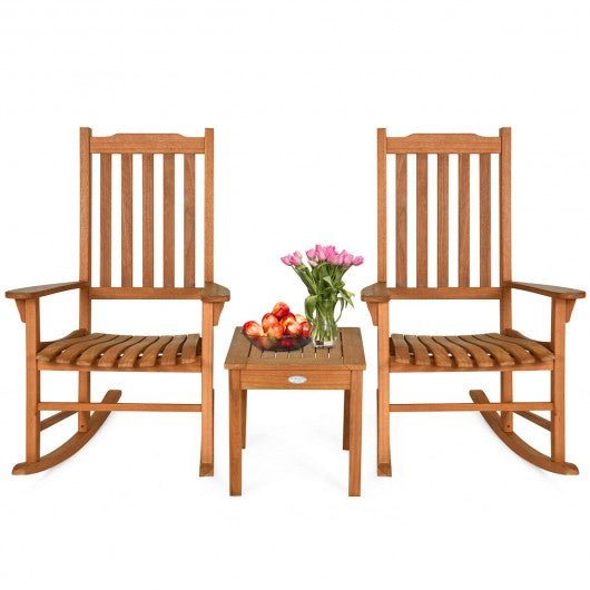 3 pcs Eucalyptus Rocking Chair Set with Coffee Table