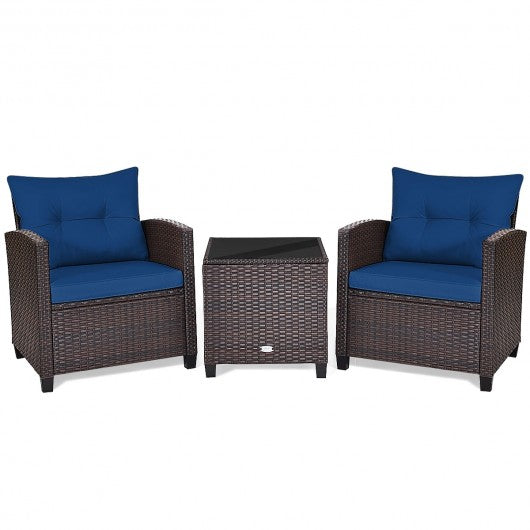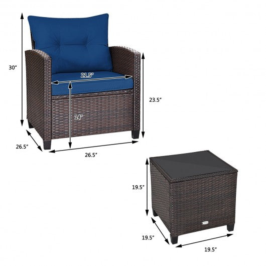 3 Pcs Patio Rattan Furniture Set Cushioned Conversation Set Coffee Table-Navy